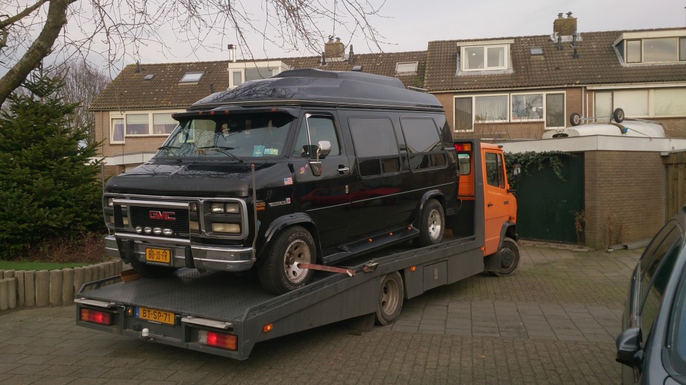 Zoals gezegd: op zoek naar een andere auto met meer bagageruimte. Een Chevy Van stond ook al lang op mijn lijst, maar het liefst had ik dan GMC op de grille staan. Verder is het dezelfde auto overigens. De aankoop had nog al wat voeten in aarde. Het liefst wilde ik weer een belastingvrije auto, maar de kwaliteit van het aanbod in dit soort auto's was zo slecht dat ik uiteindelijk toch één van de latere bouwjaren heb gekocht. Dan zit je op zo'n dikke 2000 euro belasting per jaar. Dat kan 500 worden als de auto op camper kenteken staat. Dat stond hij en de garage was ervan overtuigd dat hij aan alle eisen van de belastingsdienst voor dit soort voertuigen voldeed. Ik had mijn twijfels en kreeg daarin helaas gelijk. Het dak moest verhoogd. De garage was zo sportief me een derde van de prijs te berekenen en zo kwamen we op een aankoopbedrag van 6750 euro uit. Daarmee waren de problemen niet over. Op de avond dat ik hem ophaalde bleek hij niet op benzine te rijden en de LPG was op. Dus om 00.30 strandde ik langs de A 28 en heeft de ANWB gezorgd dat ik thuiskwam. Uiteindelijk was ook dat probleem opgelost, maar reed hij als over een wasbord bij een bepaalde snelheid. Om een lang verhaal kort te maken: de versnellingsbak moest gereviseerd worden, ook hiervan wilde de garage de helft voor zijn rekening nemen, de andere 900 euro kwam voor mijn rekening.
